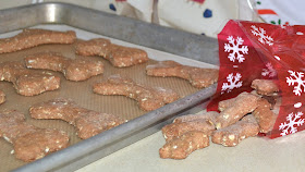 I don't know about your dog, but Sweetpea behaves as if she is possessed around certain people food.  She can hear a banana being ripped from the bunch a quarter mile away. (OK, that's and exaggeration) No matter where Sweetpea may be in the house, when I open the cheese drawer of the fridge, she is at my feet before that drawer is fully opened.  She usually goes back to bed after her breakfast, but will leap out of bed when she hears the crunch of lettuce being torn from the head as I make my lunch for work.  She makes sounds as if she is speaking in tongues at the sight or smell of cantaloupe, carrots, apples, scrambled eggs, and anything that may have maple syrup poured over the top.  The smell of peanut butter = instant drool.  Got the picture?  She's spoiled and she's bad.  She stomps her feet and she can beg for an unhealthy amount of time.  She's not totally undisciplined.  I've discouraged her from begging at the dinner table.  If she begs at the table, it's always next to Paul, the pushover one person who shall remain nameless.  I tend to be the disciplinarian and tell her to lie down.  She acts totally dejected, goes to her bed, and lets out a big sigh.  Sweetpea is a master manipulator, but we love her dearly and wouldn't want her to be any other way. Full of spunk and energy, she is our eternal puppy.  Make some of these treats for your best friend and while you're at it, bag some up and share them with all your four legged friends.